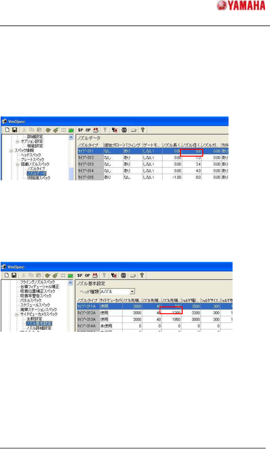 これにより、311A,311F ノズルの新旧互換化のために必要な以下の情報が、マシン設定に反映さ