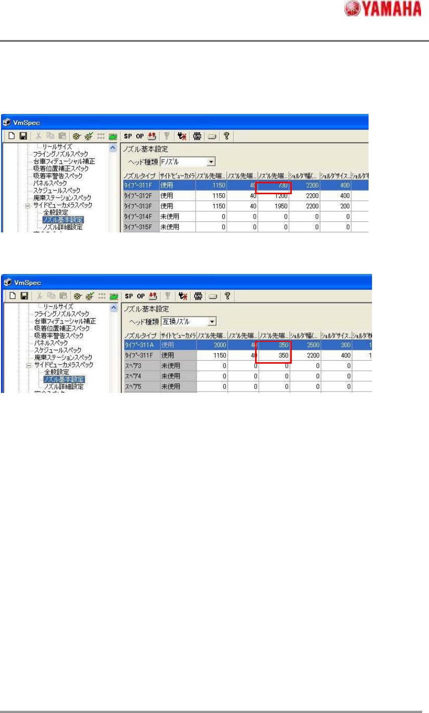 これにより、311A,311F ノズルの新旧互換化のために必要な以下の情報が、マシン設定に反映さ