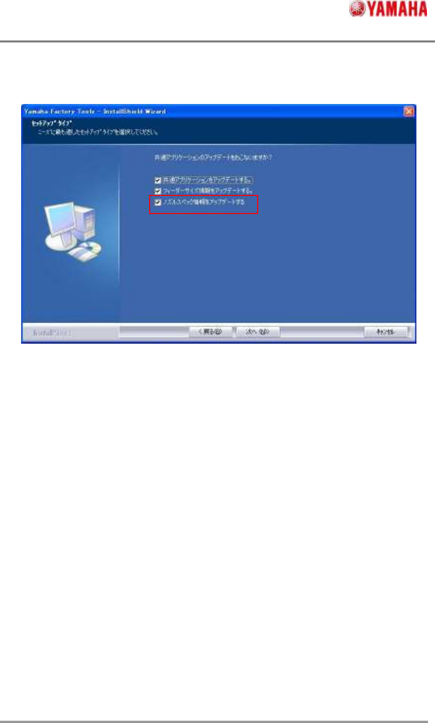 バージョンアップ作業の途中、以下の画面が表示されたら、「ノズルスペック情報をアップデートす