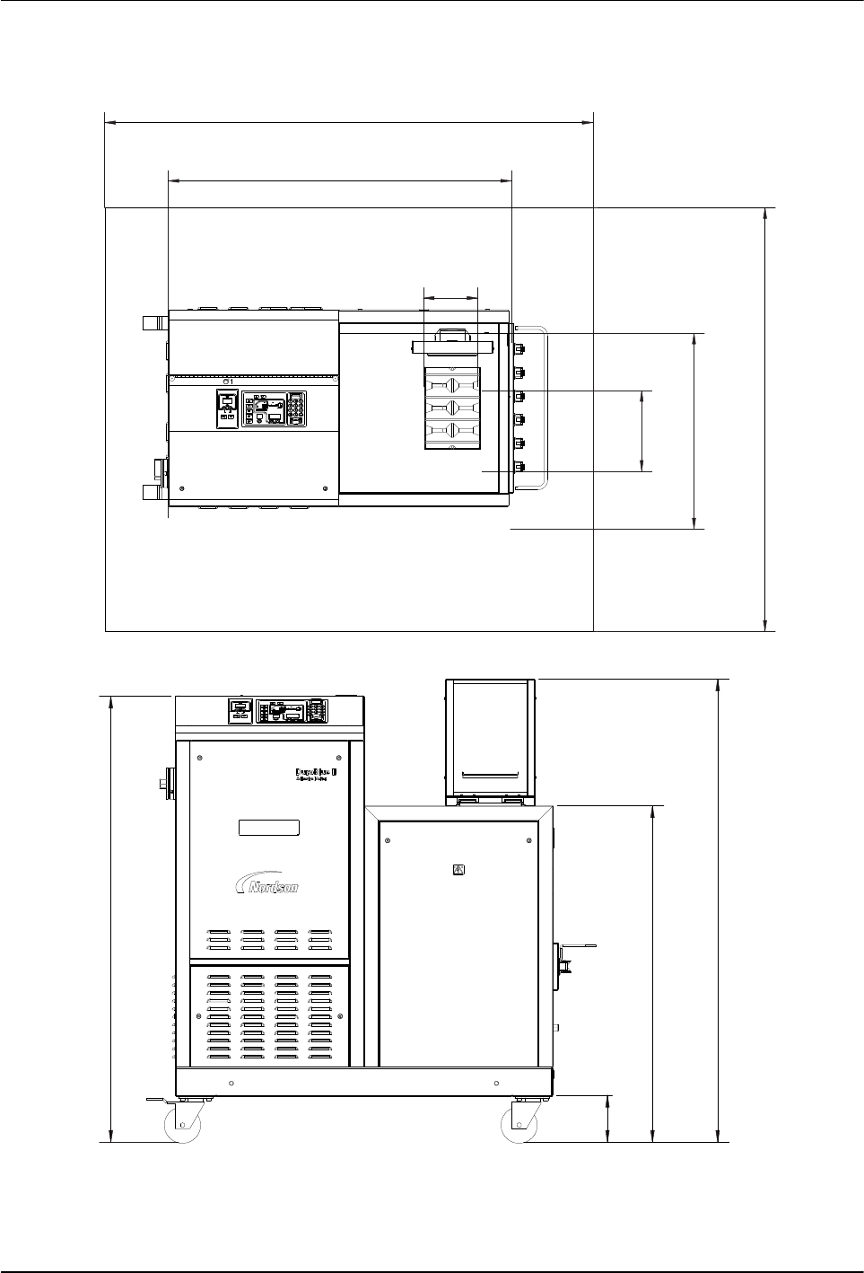 Installation 3-3 Part 1126931_01 2018 Nordson Corporation Minimum Installation Clearances 118 in. (3000 mm) 41.5 in. (1054.5 mm) 6.6 in. (167 mm) 38.3 in. (973 mm) 23.6 in. (600 mm) 9.7 in. (247 mm) 38.3 in. (973 mm) 1…