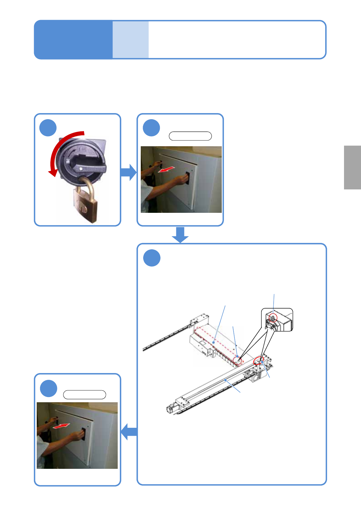 SPG EJP6AC-MB-0 3MM-03 4 3 1 2 对滚珠丝杠添加润滑油 ( → P .3-1-2) 3-4-6 Y 轴滚珠丝杠 X 轴滚珠丝杠 润滑油接管 ●用润滑油枪添加 2 次 (1.8 cm 3 ) 润滑油 每 560 小 时保养 识别单元 ( 滚珠丝杠 ) 的润滑油添加 使用工具:十字螺丝刀 所要时间: 15 分钟 维修保养篇 3-4-6 每 5 6 0 小 时 保 养 定 期 检 查 盖的缺口 盖的孔 ●请将润滑油…
