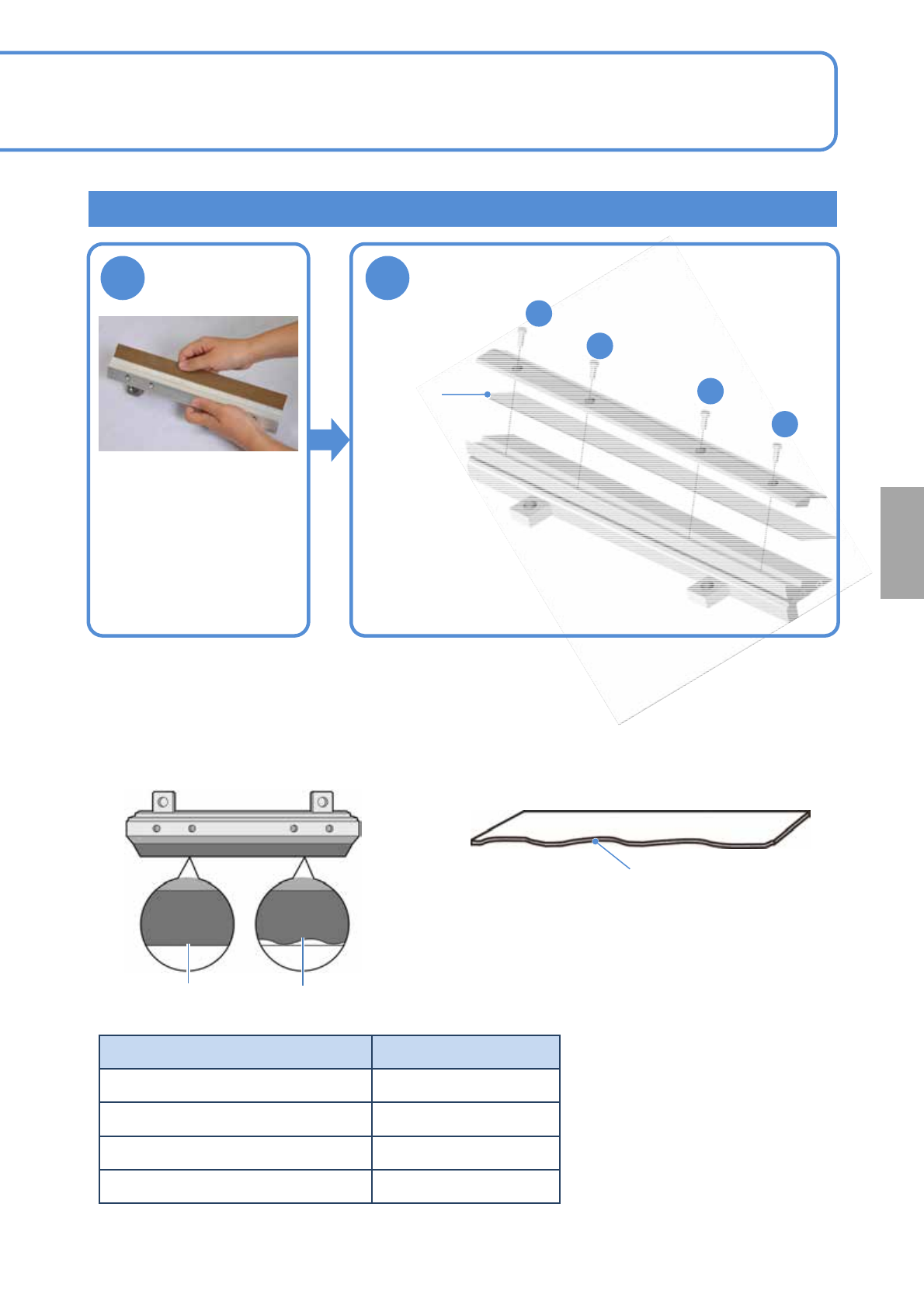 SPG EJP6AC-MB-0 4MM-02 4-1-1 -1 金属刮刀 刮刀刃 螺栓和 小垫圈 刮刀压板 安装刮刀刃和刮刀压板 ●螺栓 (4 个 ) 拧紧扭矩 :194 cN·m ■刮刀的装卸 ( → 「操作篇」 P.2-3-4) 卸下 4 个螺栓 , 卸下刮刀压板和刮刀刃 1 2 ●螺栓按 a,b,c,d 的顺序拧紧到一半后 , 再以同样的顺序将其完全拧紧。 d c b a 更换 维修保养篇 4-1-1 大致的更换时期是 , 塑料:…