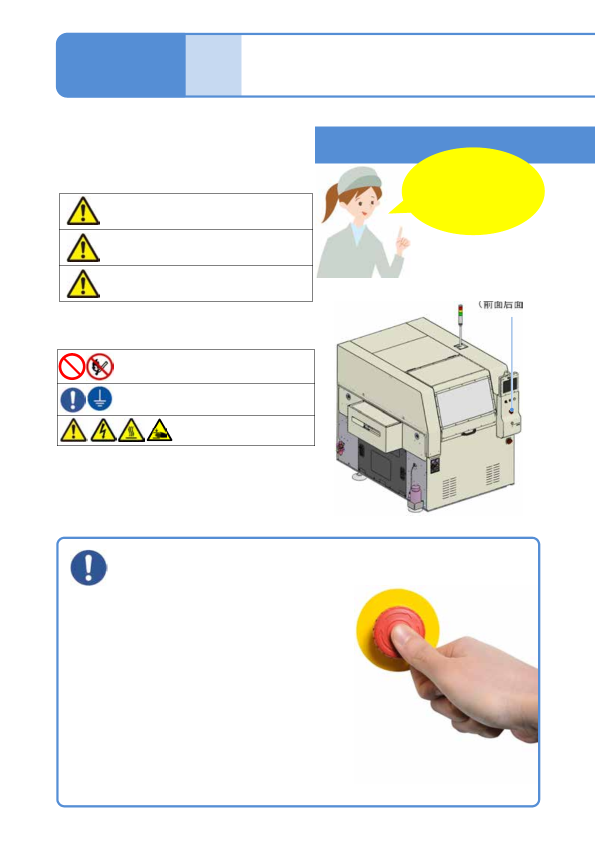 如果感觉到危险或异常,按紧急停止开关