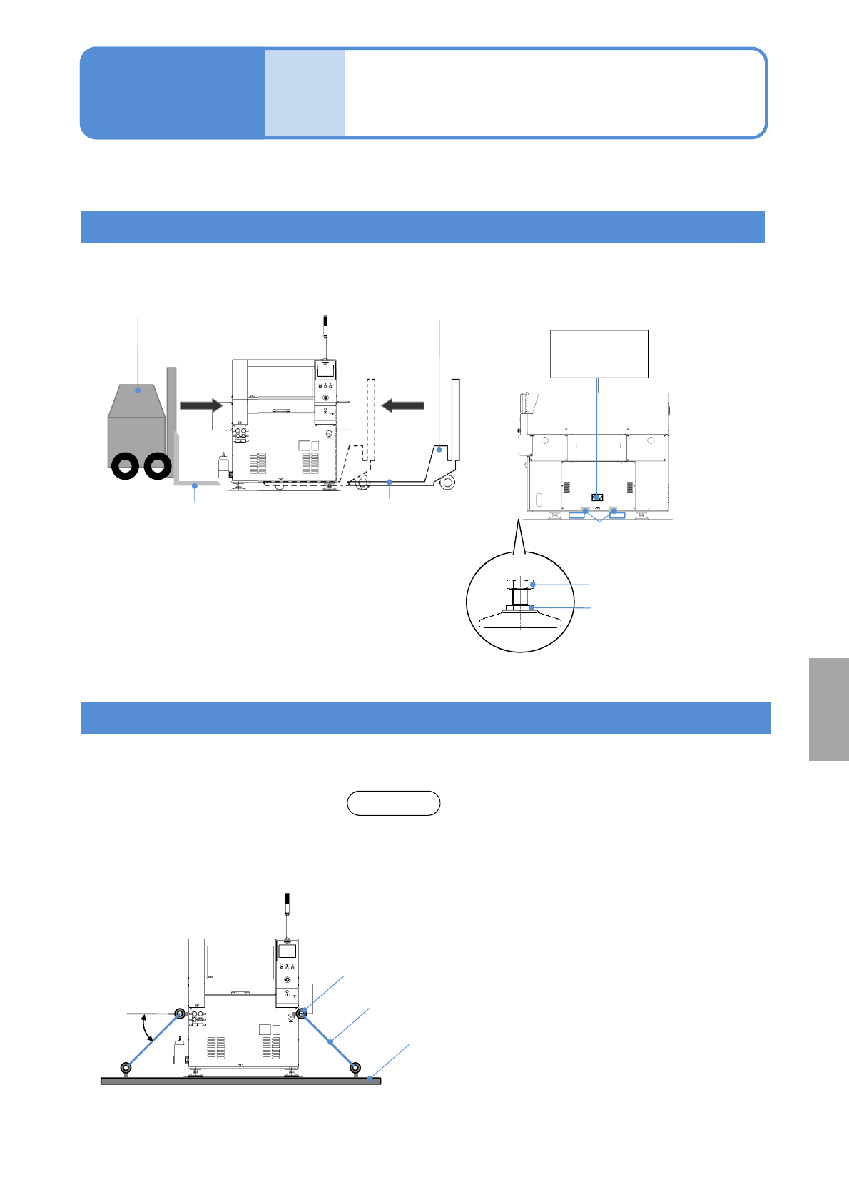 ①把叉子下降到设备的最下面,调节水平垫的调整螺栓