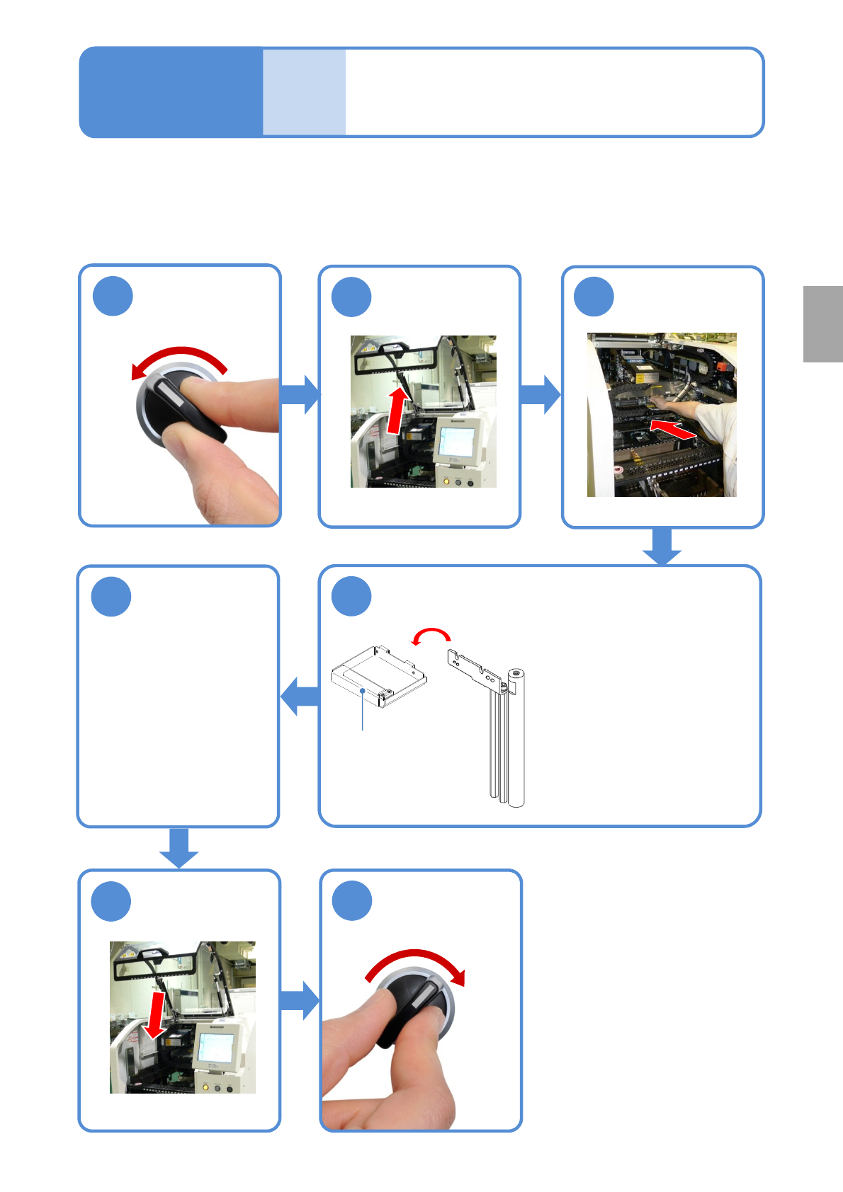 NPM-D3 EJM6DC-MB-04M-06 OFF SERVO SERVO ON 工作 结束前 擦拭站的清扫 ( 点胶头 : 选购件 ) 使用工具 : 纱布 所 需时间 :3 分钟 (1 个部位 ) 4-2-4 有关擦拭站清扫的说明。 维修保养篇 4-2-4 5 把擦拭站放回原处 4 1 2 3 把 X 轴往内推 卸下擦拭站,擦掉粘在上面的粘着剂 擦拭站 ●请确认擦拭站是否放在正 确的位置。如果放在台子 的边缘,运转时有可能会 损伤…