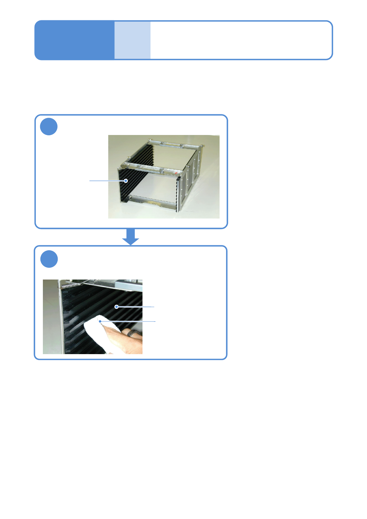 NPM-D3 EJM6DC-MB-06M-0 7 安全盖的清扫 对安全盖的清扫方法进行说明。 使用工具 : 棉纱布、 清洁且柔软的布 所需时间 :5 分钟 ●安全盖不限定每月 1 次,有灰尘等污垢时请随时清 扫。 1 清扫安全盖 ●因为安全盖容易受损伤,请注意磨 损或划痕。 注意 6-16 维修保养篇 6-16 每 5 6 0 小 时 保 养 定 期 检 查 ●当灰尘等的附着严重时,以布蘸水 拧干后再擦 拭。 在擦拭之后,用干布擦拭干净…