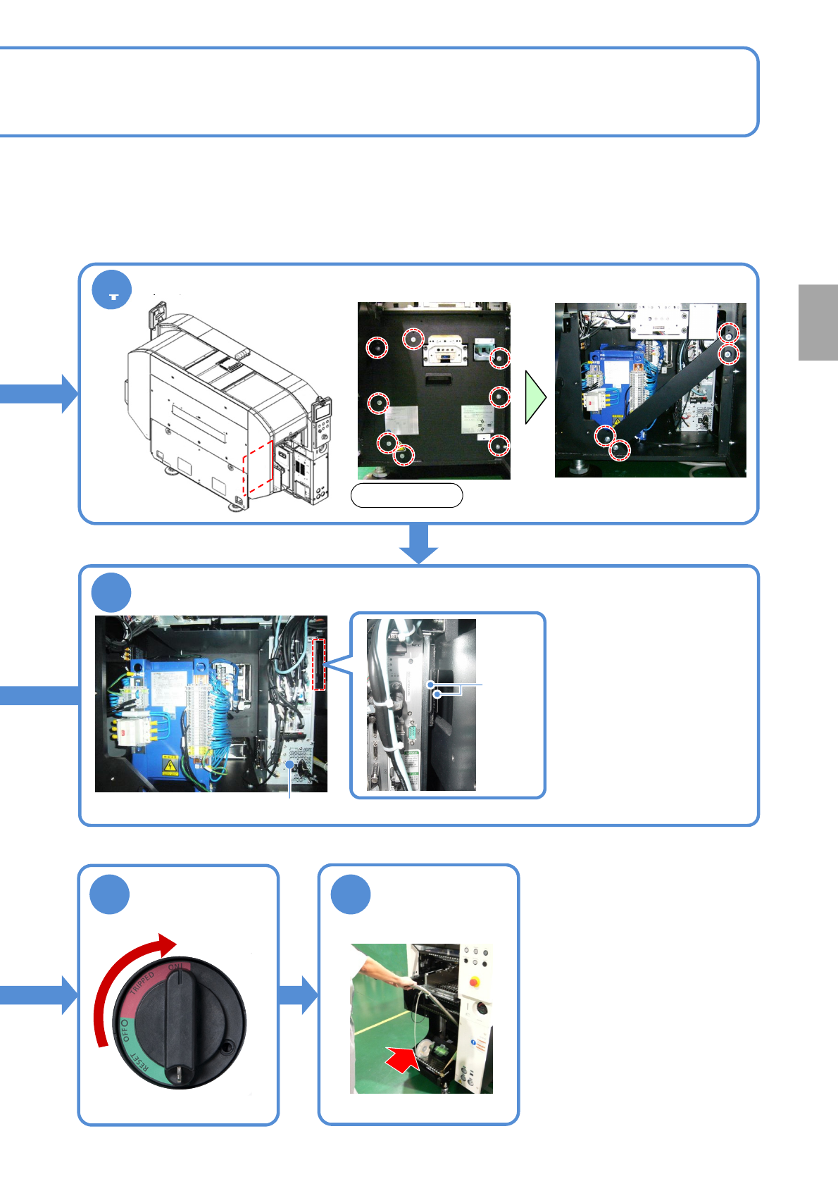 NPM-D3 EJM6DC-MB-08M-08 8-1 -1 使用工具 : 六角扳手 、吸尘器 所需时间 :10 分钟 2 安装过滤器 安装安全盖 ●螺丝 (8 个 ) 卸下交换台车 ( → P.3-2) 1 除去过滤器的灰 尘 弹簧 过滤器 过滤器的清扫 ( 主控制器 ) 维修保养篇 8-1 ●使用弹簧夹住过滤器。 ●捏住弹簧的提纽往内推入, 如照片所示使突起部 A 卡住。 4 OFF 卸下供料器工作台 盖 ( → P.3-3) 安装…