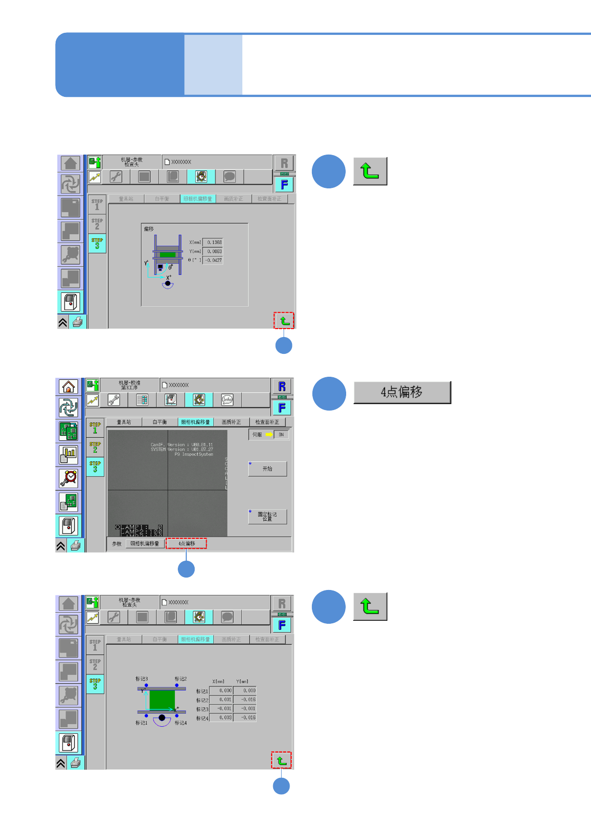 检查头在校准照相机偏移量时, 计测基准点4点的位置,对于摄像时照相机XY位置4点的偏移来进行偏移补正。