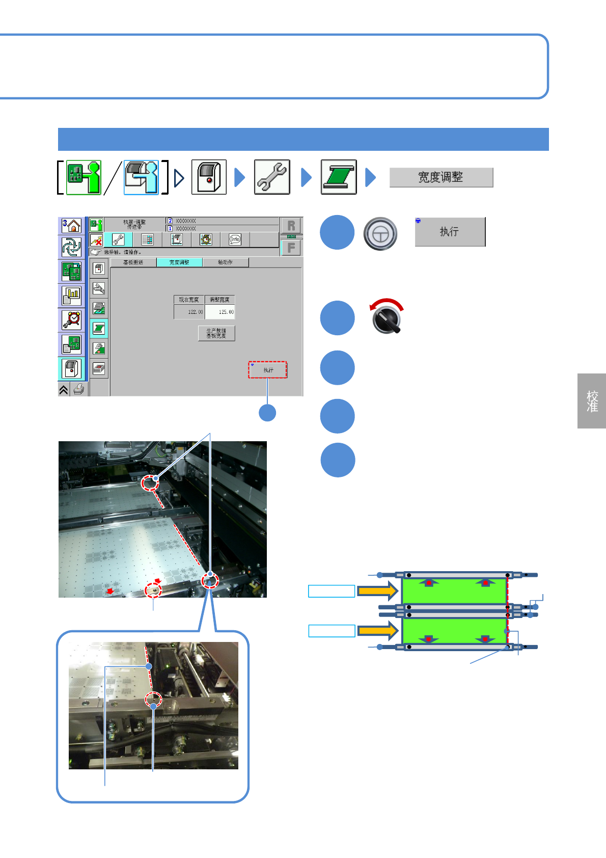(把搬送传送带的宽度按照面补正治具的