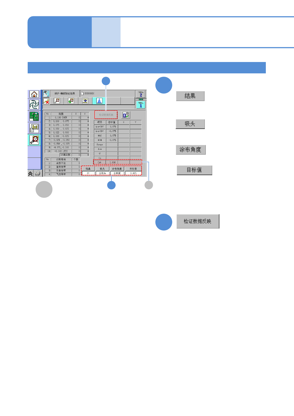 NPM-D3 EJM6DC-MB-13M-06 13-20-2 -20 点胶确认和反映 ( 点胶结果的确认 ) 1 点胶结束之后 2 ( 自动运转结束 ) + 3 4 5 2 3 4 5 选择工作台 ( 显示前后个别或者综合的精度 )
