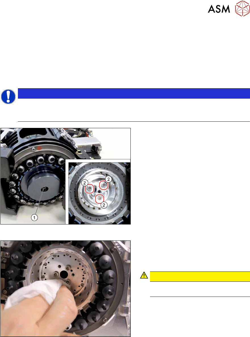 6 Blendenring, Haltekreis und Schalldämpfer 6.1 Blendenring/Haltekreis/Dichtscheibe tauschen Serviceanleitung SIPLACE SpeedStar (C&P20 P2) 01/2019 45 Vorbereitung ► Bauen Sie den Kopf aus der Maschine aus. Für den Au…