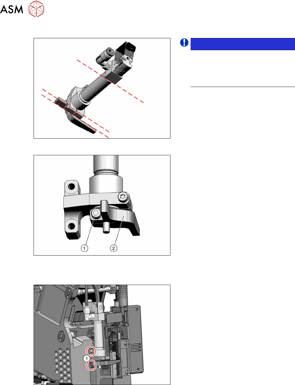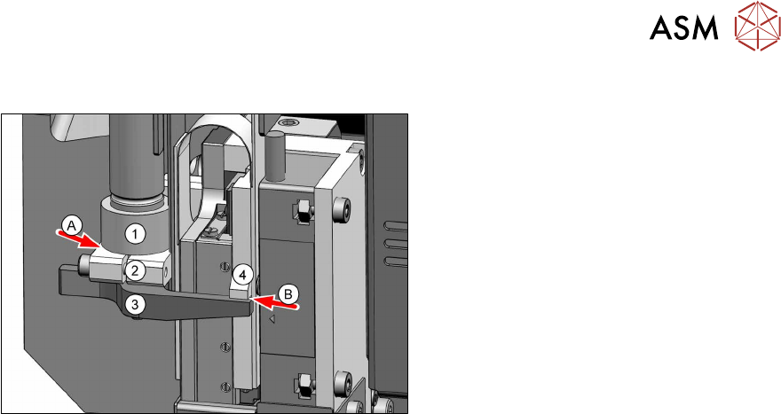 8 Rückholeinheit 8.1 Rückholeinheit, Zylinder, Aufnahme und Mitnehmerhebel tauschen 62 Serviceanleitung SIPLACE SpeedStar (C&P20 P2) 01/2019 Einbau Mitnehmerhebel Abb.88: Parallelität HINWEIS! Auf Parallelität ach…