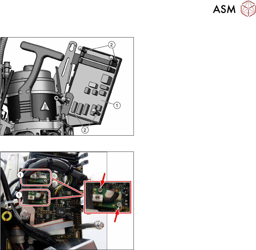 9 Platinen 9.1 Platine Zwischenverteiler (ZV) tauschen Serviceanleitung SIPLACE SpeedStar (C&P20 P2) 01/2019 67 Einbau Abb.96: Platine montieren ► Befestigen Sie die Platine (1) mit vier Befestigungsbolzen (2) . S…