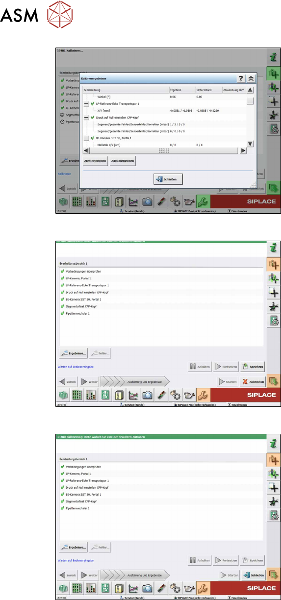 Abb.121: Kalibrierschritte und Statusanzeige