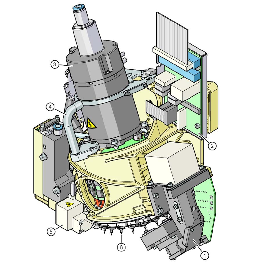 3 Dati tecnici e moduli Istruzioni per l'uso SIPLACE serie X 3.5 Testa di montaggio Dalla versione software SR.706.1 SP1 Edizione 10/2014 134 3 Fig. 3.5 - 2 SIPLACE SpeedSt ar - Gruppi funzionali parte 2 (1) Videoca…