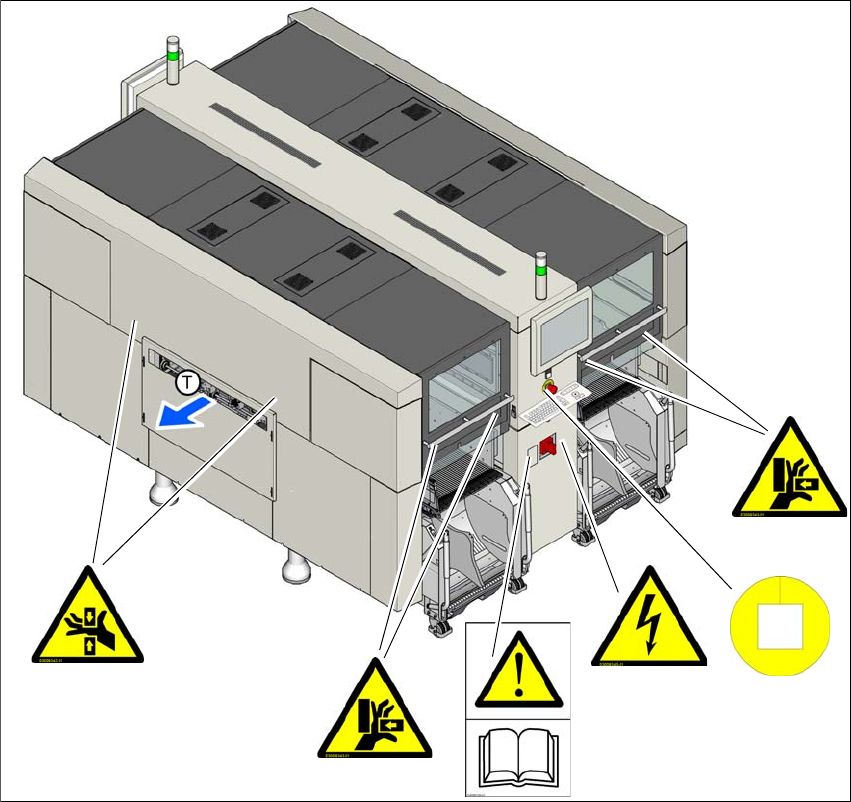 Fig. 2.2 - 1 Cartelli di avviso sulle macchine - parte 1 (esempio: SIPLACE X2 S / X3 S / X4 S)
