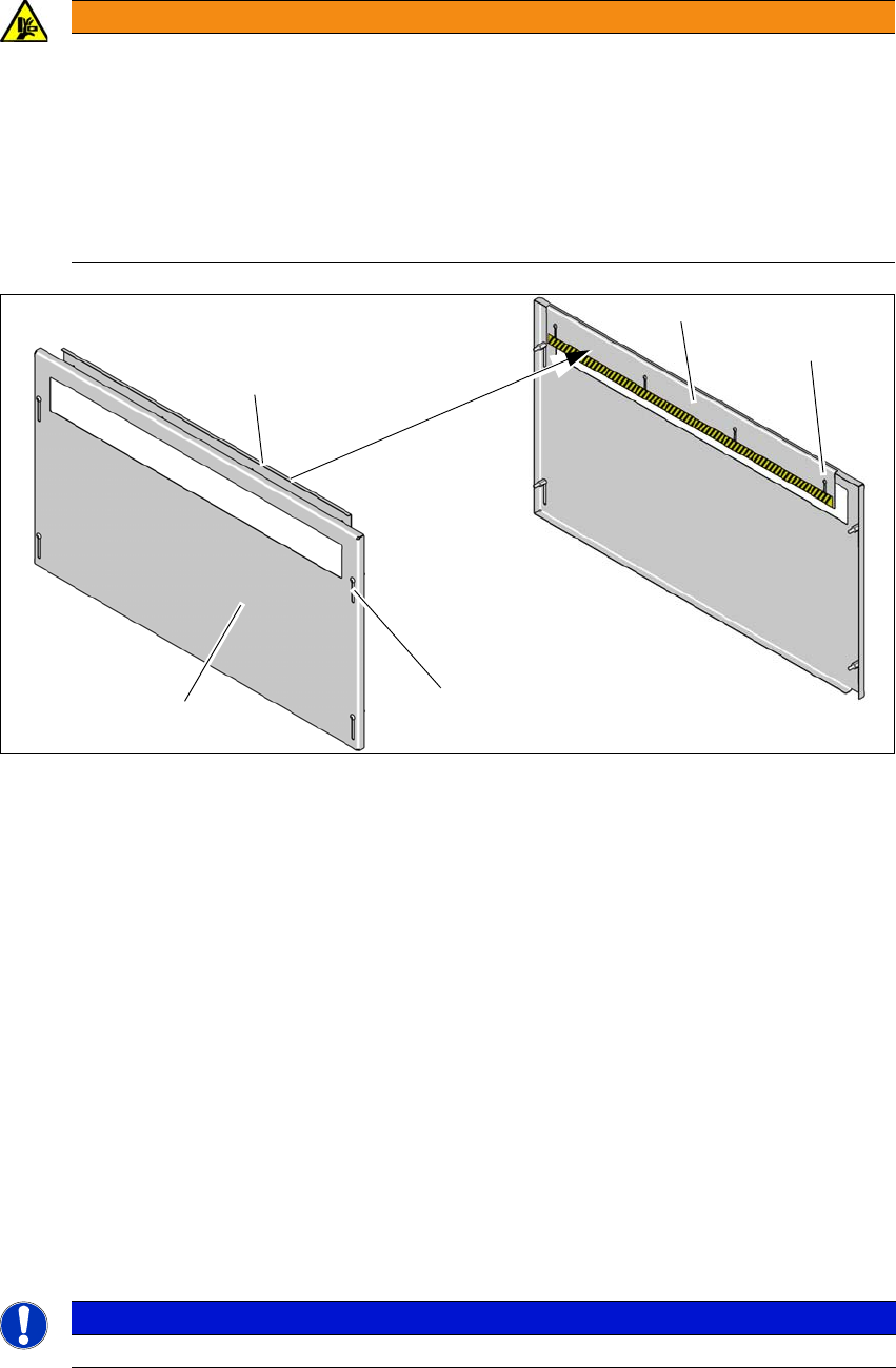 Montare il riparo per l'accesso delle mani (1) sul nastro di ingresso e di uscita.