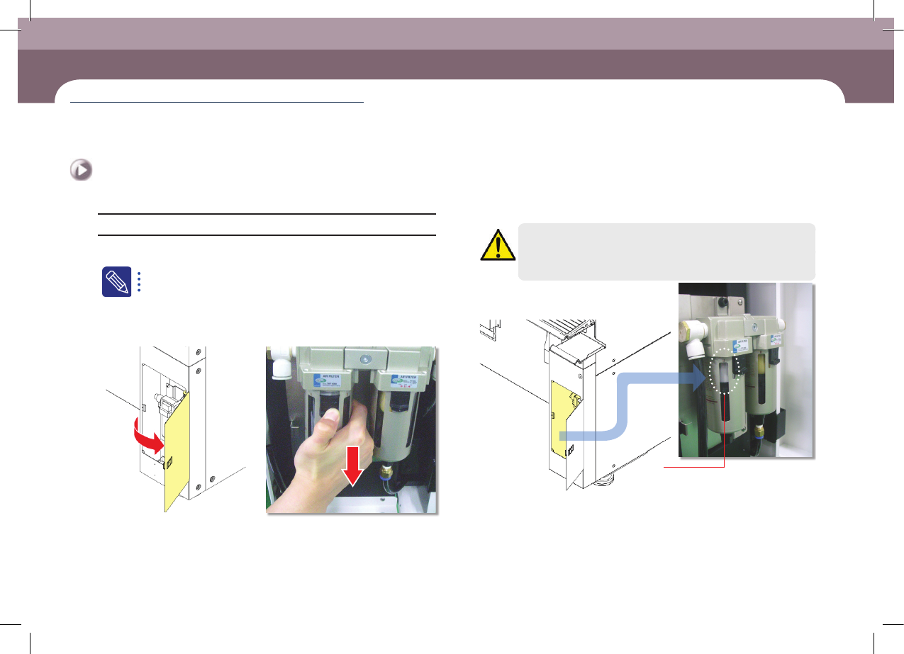 Step 3. 打 开 设 备 背 面 右 下 角 的 护 门 后 、拉 下 Air Filter容器闭锁按键