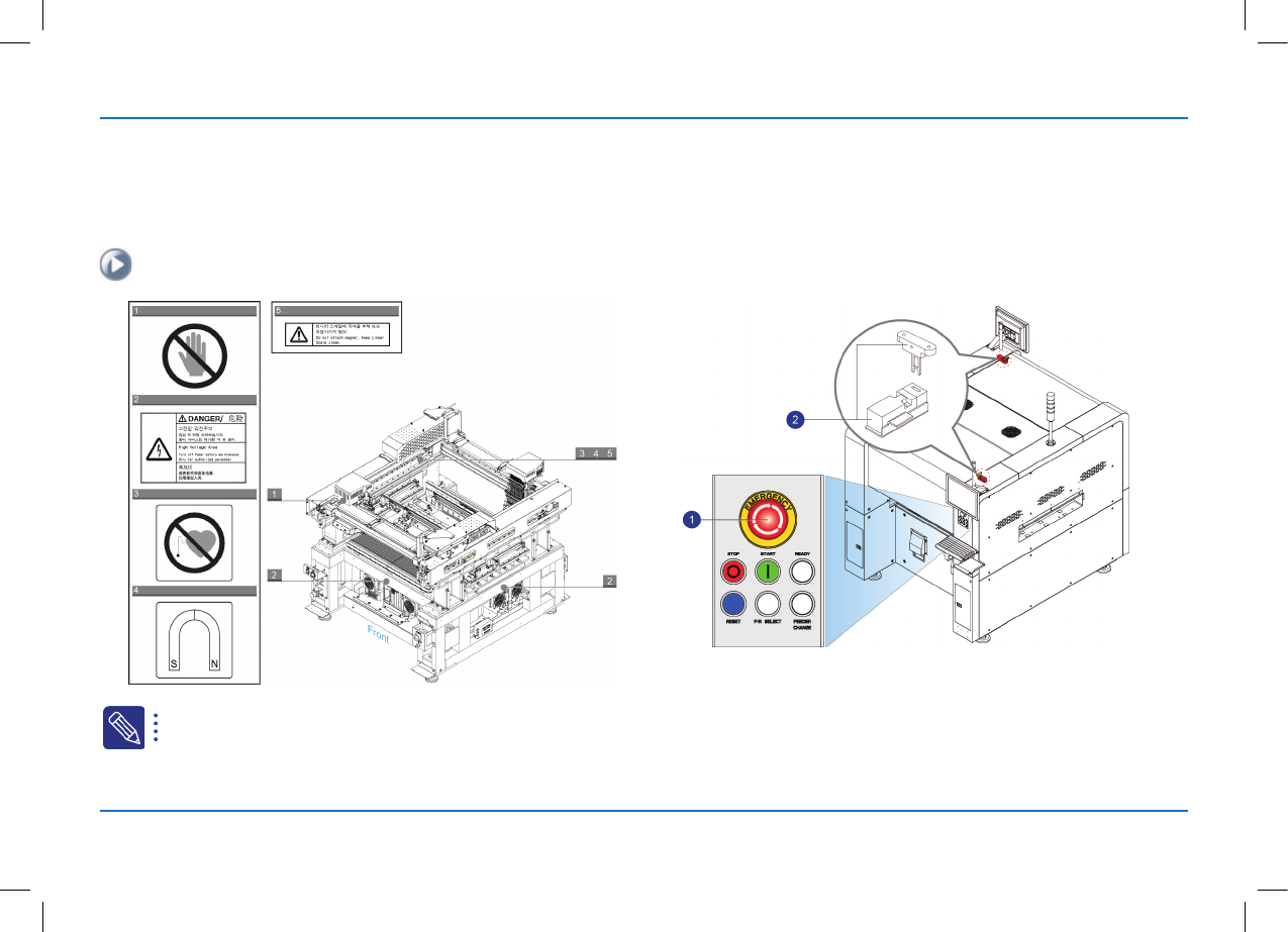 ※ 安全警告及注意事项 为了安全地使用设备在下列位置粘贴了安全提示标签。 设备前面 安全提示标签的详细内容请参阅 Administrator' s Guide 。 设备后面