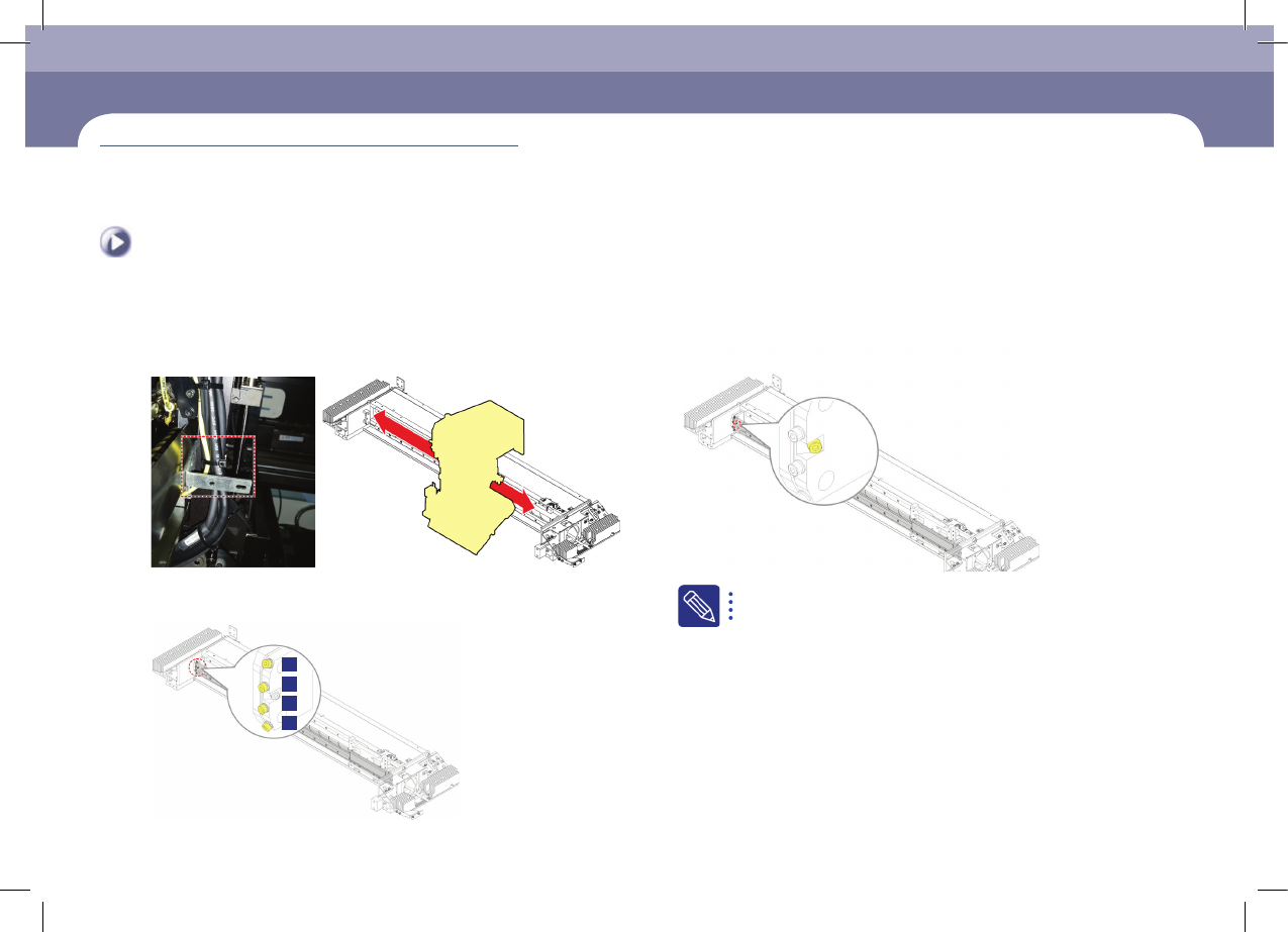 每月检验 Chap ter 5 Advanced Mult i- Func ti onal Place r DE CAN L 2 M ain te na nc e H an db oo k 5-1 6 X Frame LM Guide,Ball Screw清扫及注油 每月检验 Step 8 . 利 用产业用纸 质 擦 拭器 清扫 LM Guide Rail 与 Ball Screw Step 9. 利 用六 角 扳手( M3 )按照下图…