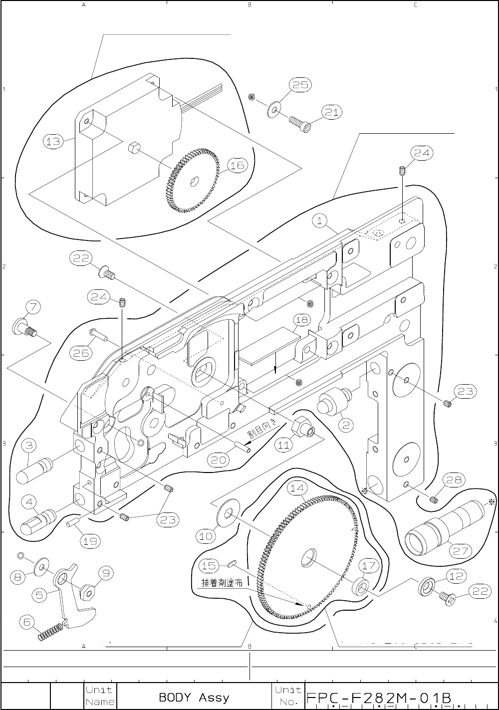 F2-82M (B type) P 1 No. Code No. Parts Name Q'ty Parts No. LG4-M1A10-510 BODY ASSY 1 AS-E08-8501 LG4-M1AA9-510 MOTOR ASSY 1 AS-E08-8587-B LG4-M2A7L-510 CAM GEAR ASSY 1 AS-E08-8585-2PB LG4-M2A7L-520 CAM GEAR ASSY 1 A…