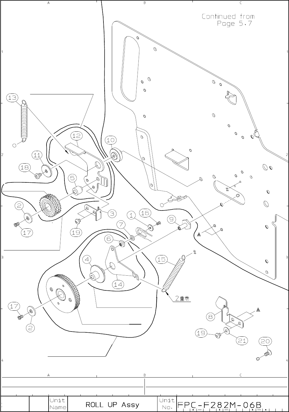 F2-82M (B type) P 5 No. Code No. Parts Name Q'ty Parts No. LG4-M1A60-510 BACK PLATE ASSY 1 AS-E08-8550-B LG4-M1A68-500 TENSION LEVER ASSY 1 AS-E08-8584 1 KW1-M116U-000 ROLLER 3 CTF-M08- 342 2 LG4-M1A6B-000 ROLLER AX…