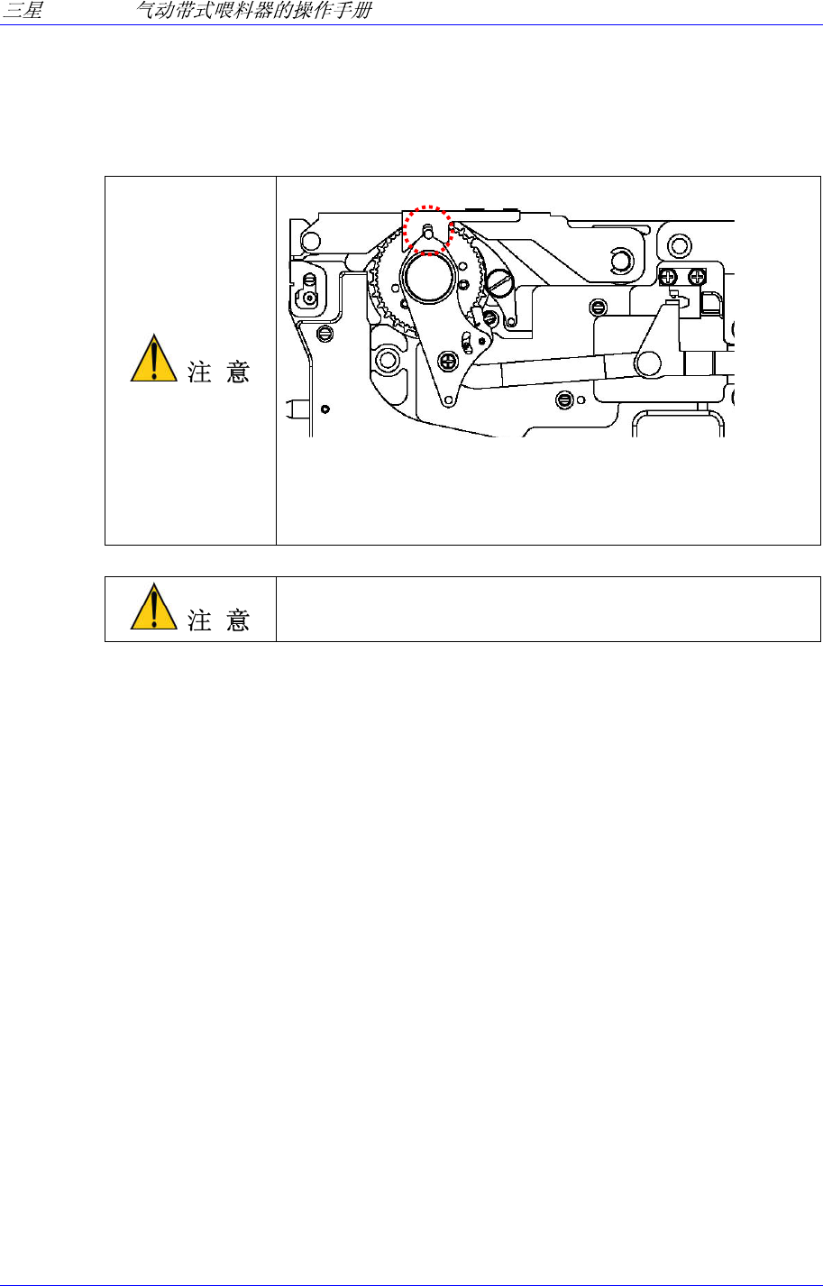 SM-Series 2.1.4. 锁夹固定 链轮夹住传输 卷带的移送槽后, 再拉下料带 导轨,料带导 轨到达传输卷带 状态下最 终调节并确认传输卷带是否正常地夹在链轮中。 卸载料带导轨时,请确认卷门的槽是否紧扣于杆销。 不 正常 紧 扣 于 卷门 槽 , 将 无法 关 闭 料 带导 轨 ,此 时 请 勿 强制 按住料带导轨,把卷门槽对准卷门杆销后关闭料带导轨。 另 外, 此 时 因 异常 动 作 的 发生 , 导 致 设备 和 喂料 器…