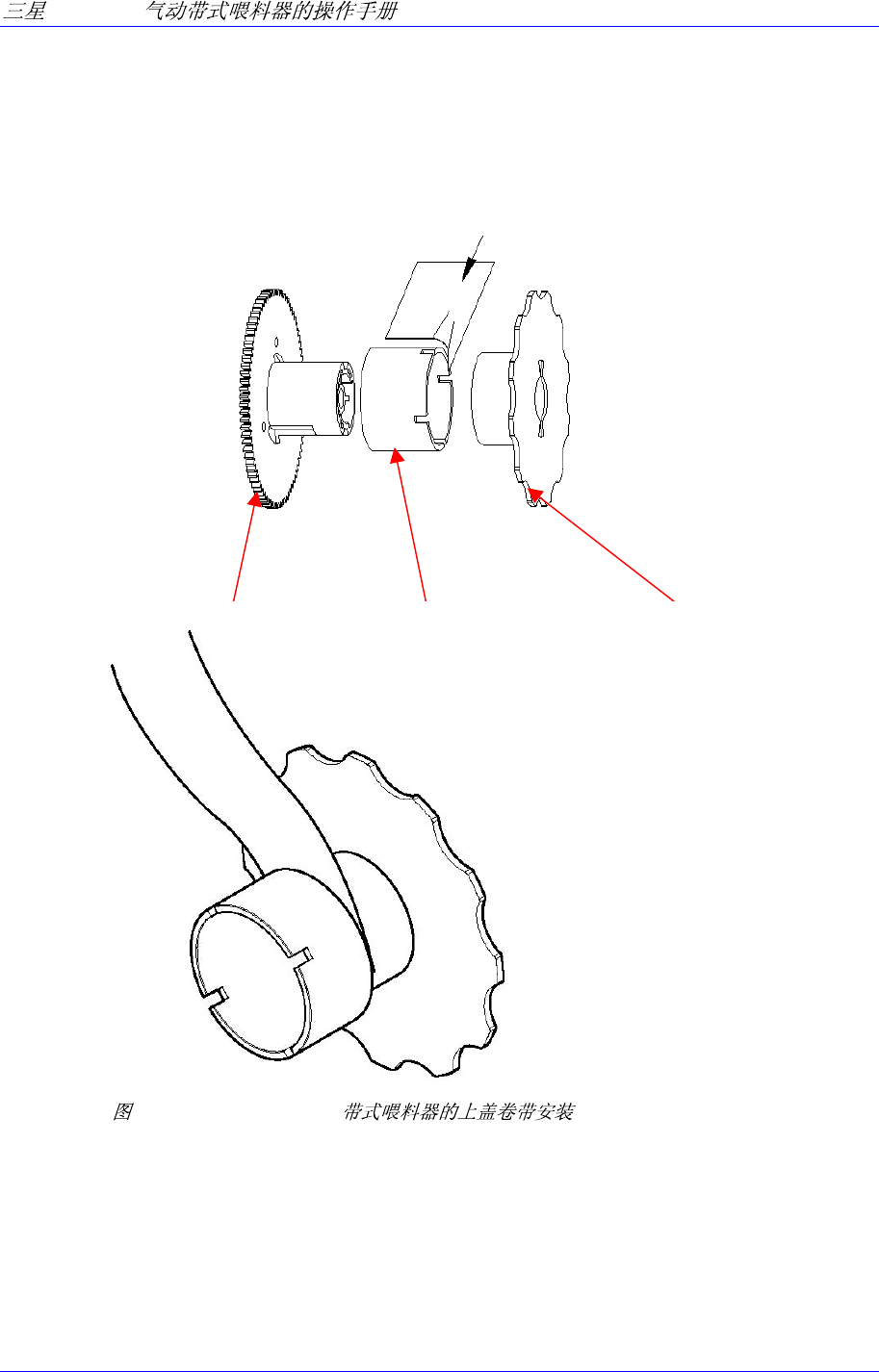 SM-Series 盖卷带贴装时 ,如下图所示注意 料带的方向 ,使盖卷带的 贴装面(紧贴于 传输卷带 的面)对准成形齿轮方向。 在 S M 2 4m m, 32 mm , 44 mm , 56 m m, 72 m m 带 式 喂 料器中 , 把 通过 辊轮 A ,B 的 上盖卷 带 的一端如下图所示卷在收带盘后,维持不松弛状态卷起收带盘。 盖卷带 Remo T ake Up Reel Remo V inyl Ring Fixed T …