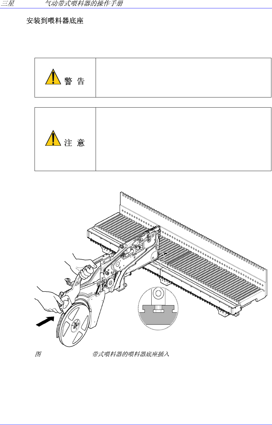 底座插槽推进喂料器。此时,位于喂料器前面下方的喂料器定位销和喂料器底座垂