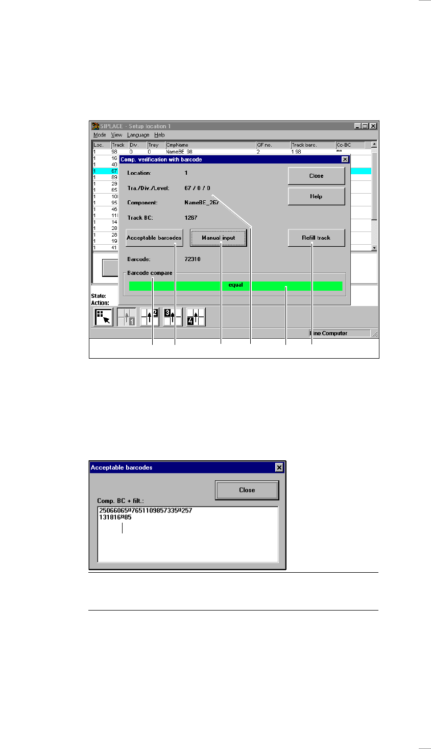 ↑ SI 4.1.2 Menyn "Comp. verification with barcode" (Uppsättningskontroll med
