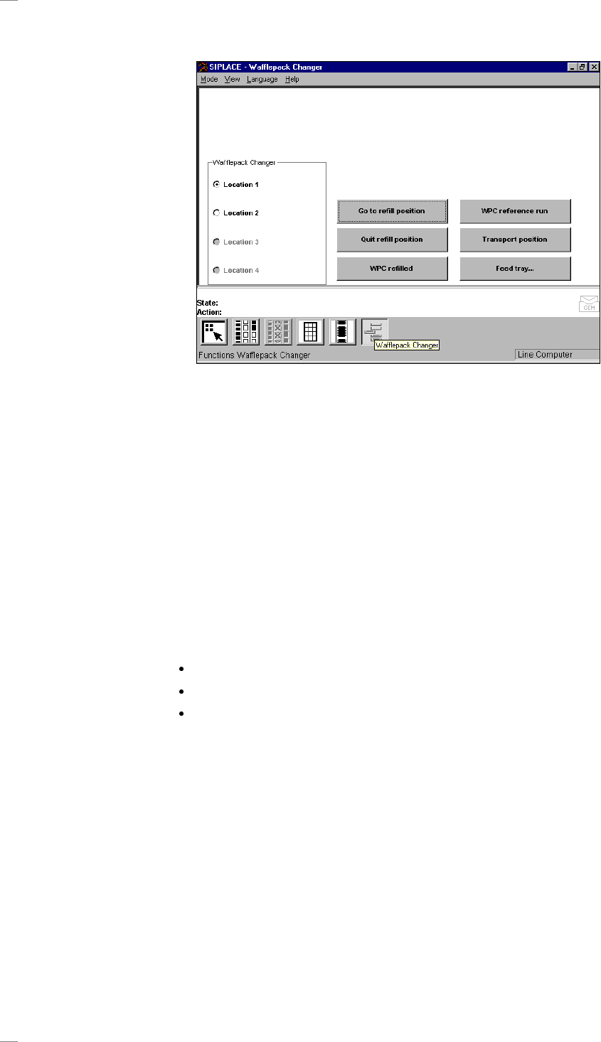 26 Meny "Wafflep ac k Changer" (Waffle-p ack-v ä xlare) Go to re fill position (K ö r til l p å fyllningsl ä g e) Lyften placeras s å att magasine n antingen ka n v ä xlas eller fyllas p å . Quit refi ll positi…