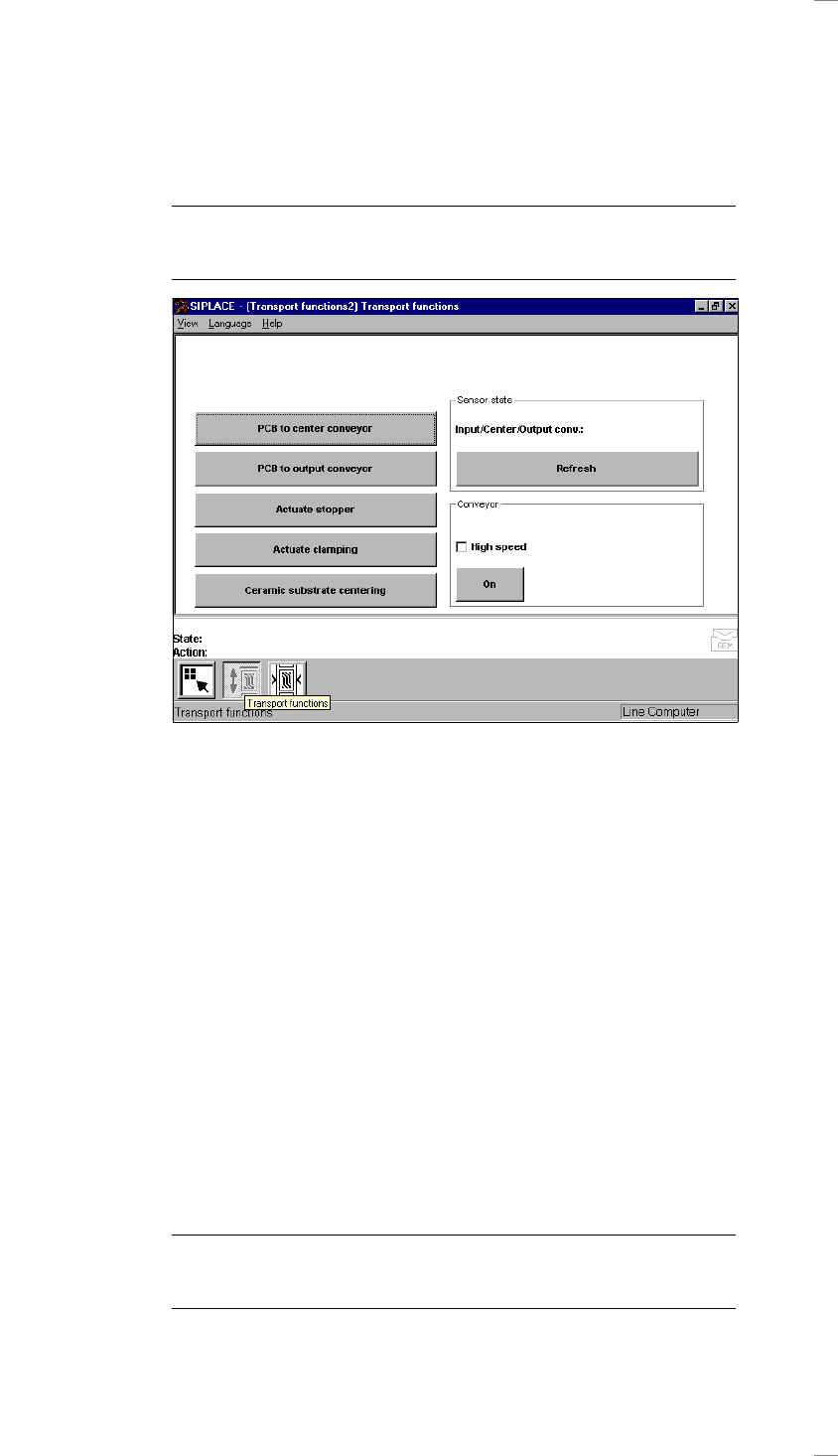 Meny "Single functions PCB transport 1"