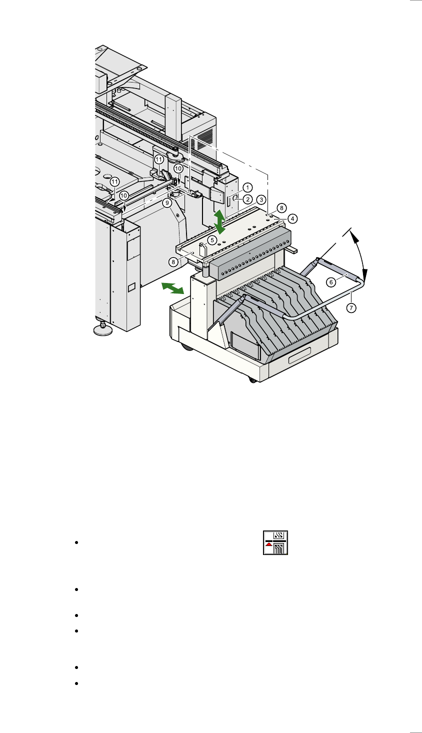 van står i övre ändläget och att bygeln (pos 7) är uppfälld.