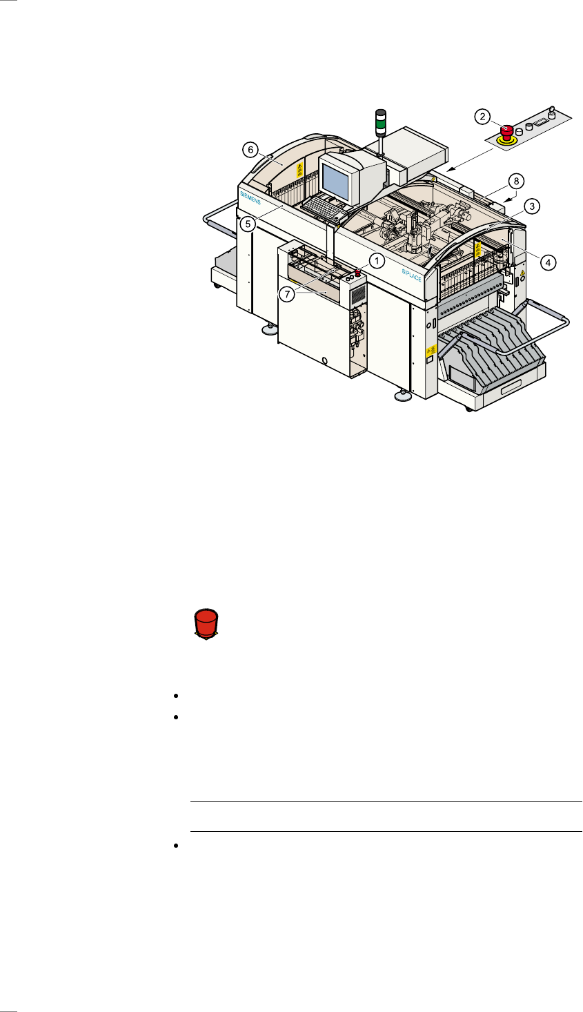 9 Maskin omr å den Nedanst å e nde bild visar de olika om r å dena i en SIPLACE F place rings- station schemat iskt. Omr å desbe teckningarna p å b ilden anv ä nd s ä ven i anv ä n dargr ä ns snittet och sk ö tselinstru …
