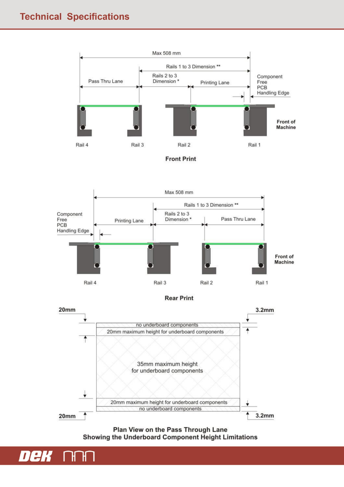 5 DEK Galaxy APi DL Machine Standar d Configuration Pr ocess Para meters Specification Print Pressure 0kg to 20kg Print Speed 2mm/sec to 300mm/sec Print Gap 0mm to 6mm Substrate Separation Speed: 0.1mm/sec to 20mm/sec Di…