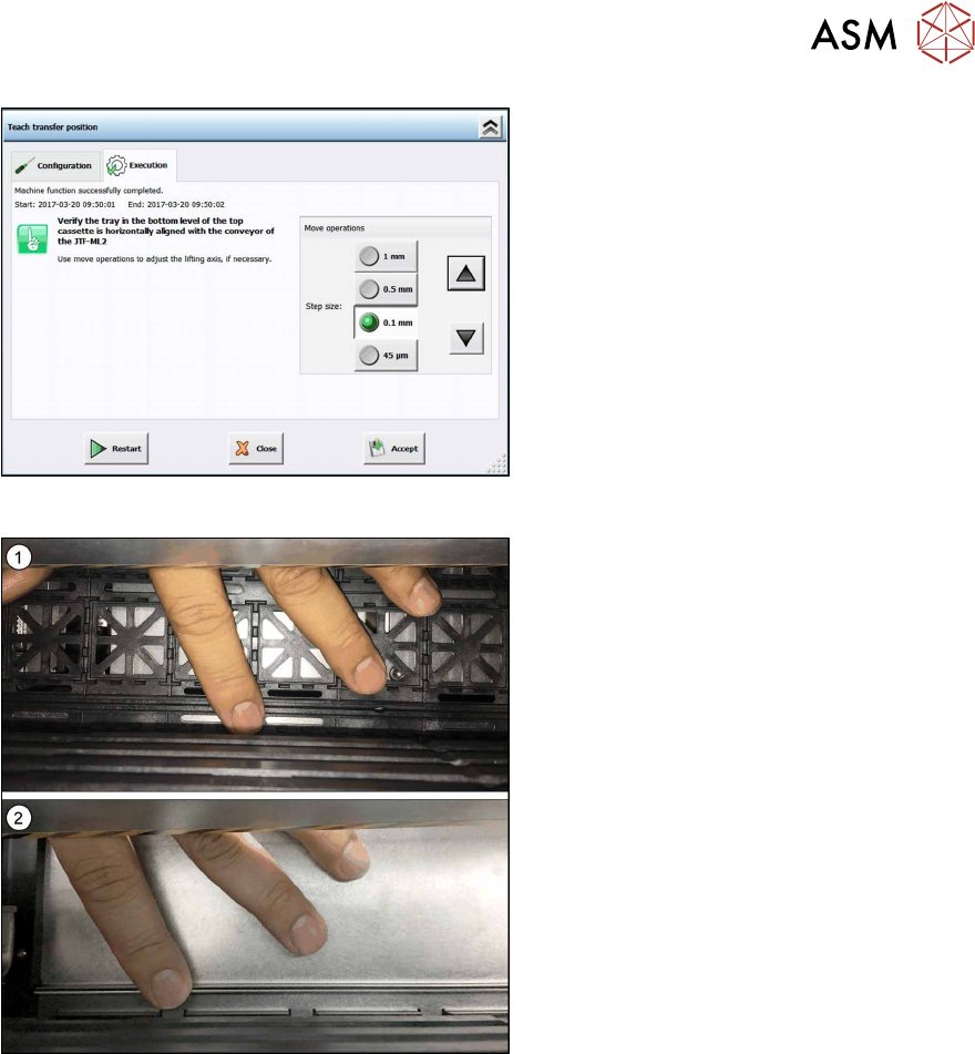 4 Setting up and commissioning 4.2 Retrofitting in the SIPLACE TX-Series 150 User Manual / Bedienungsanleitung / 用户手册 SIPLACE TX V1/V2 Series JEDEC Tray Feeder (JTF-ML2) 11/2019 4.2.5.14 Teaching the transfer position Wh…