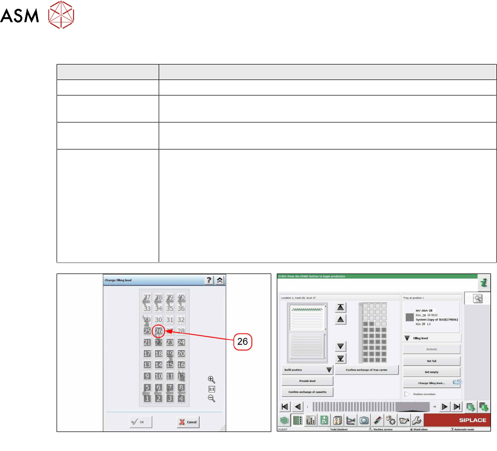 5 Tasks on the machine 5.3 Operating the JEDEC tray feeder in the station software 172 User Manual / Bedienungsanleitung / 用户手册 SIPLACE TX V1/V2 Series JEDEC Tray Feeder (JTF-ML2) 11/2019 (3) Filling Level Functions for …