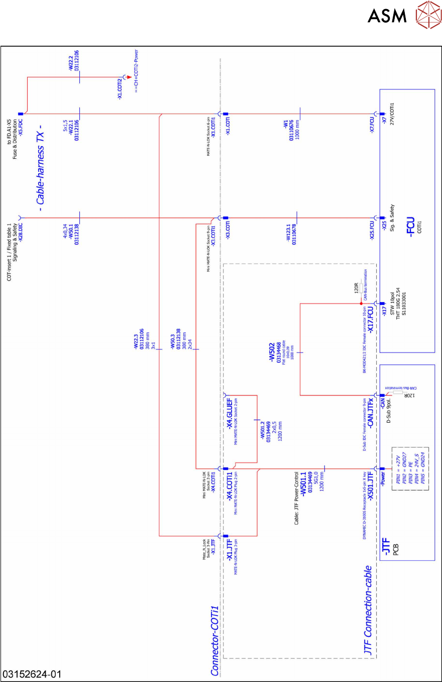 4 设置与调试 4.2 改造 SIPLACE TX 系列贴片机 User Manual / Bedienungsanleitung / 用户手册 SIPLACE TX V1/V2 Series JEDEC Tray Feeder (JTF-ML2) 11/2019 235 图91: SIPLACE JTF-ML2 在 SIPLACE TX 系列 V1 中的布线 — 第 1 部分