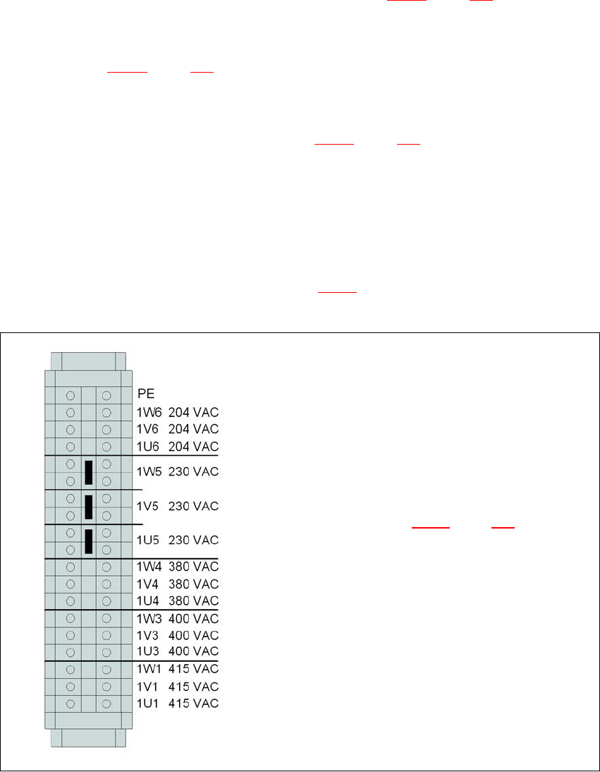 Fig. 4.2 - 5 Terminal block for the primary side of the three-phase transformer T1
