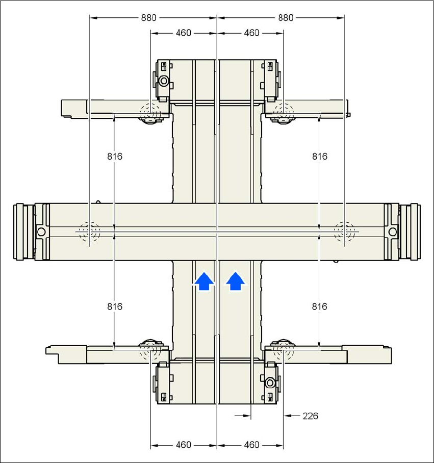 Fig. 4.3 - 24 Machine foot clearances and the stationary right conveyor edge for the PCB dual conveyorin millimeters