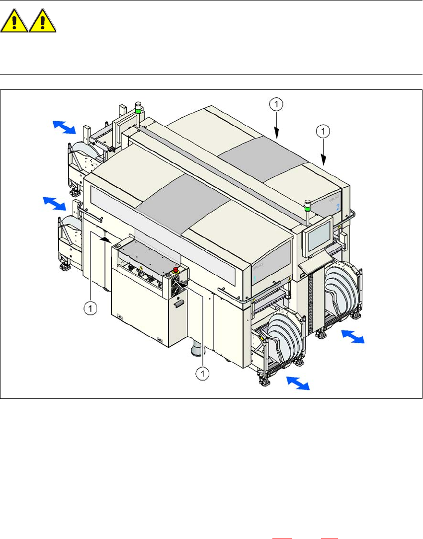 2 Operational safety User Manual SIPLACE D3 2.5 Safety instructions for operating the machine From software version SR.605.xx 07/2008 EN Edition 64 2.5.5 Safety instructions for the T winHead component cameras during a p…