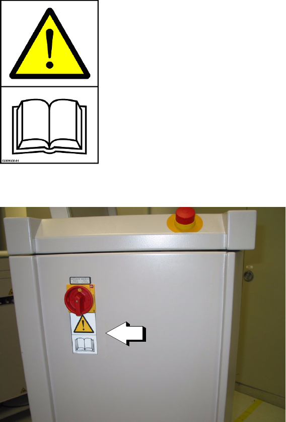 Fig. 2 - 2 Service door: Warning sticker under the main switch