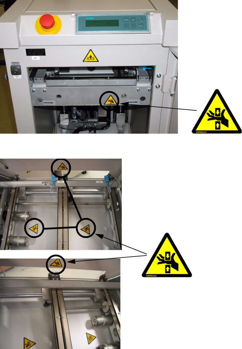 Fig. 2 - 13 Warning symbol W203 on the base plate of the top conveyor