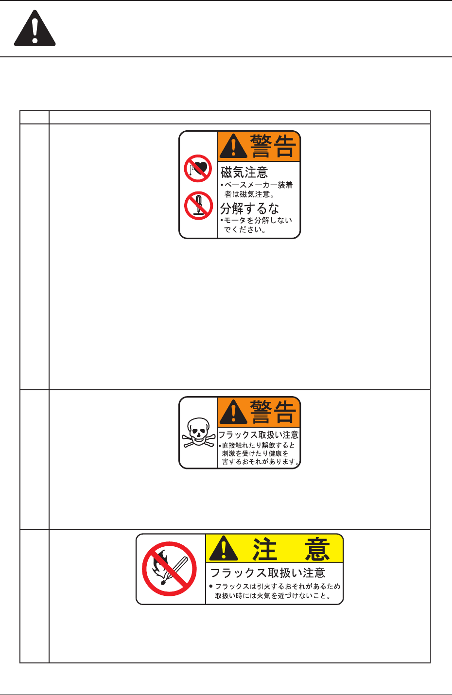 フラックスは引火するおそれがあるため、取扱い時は火を近づ