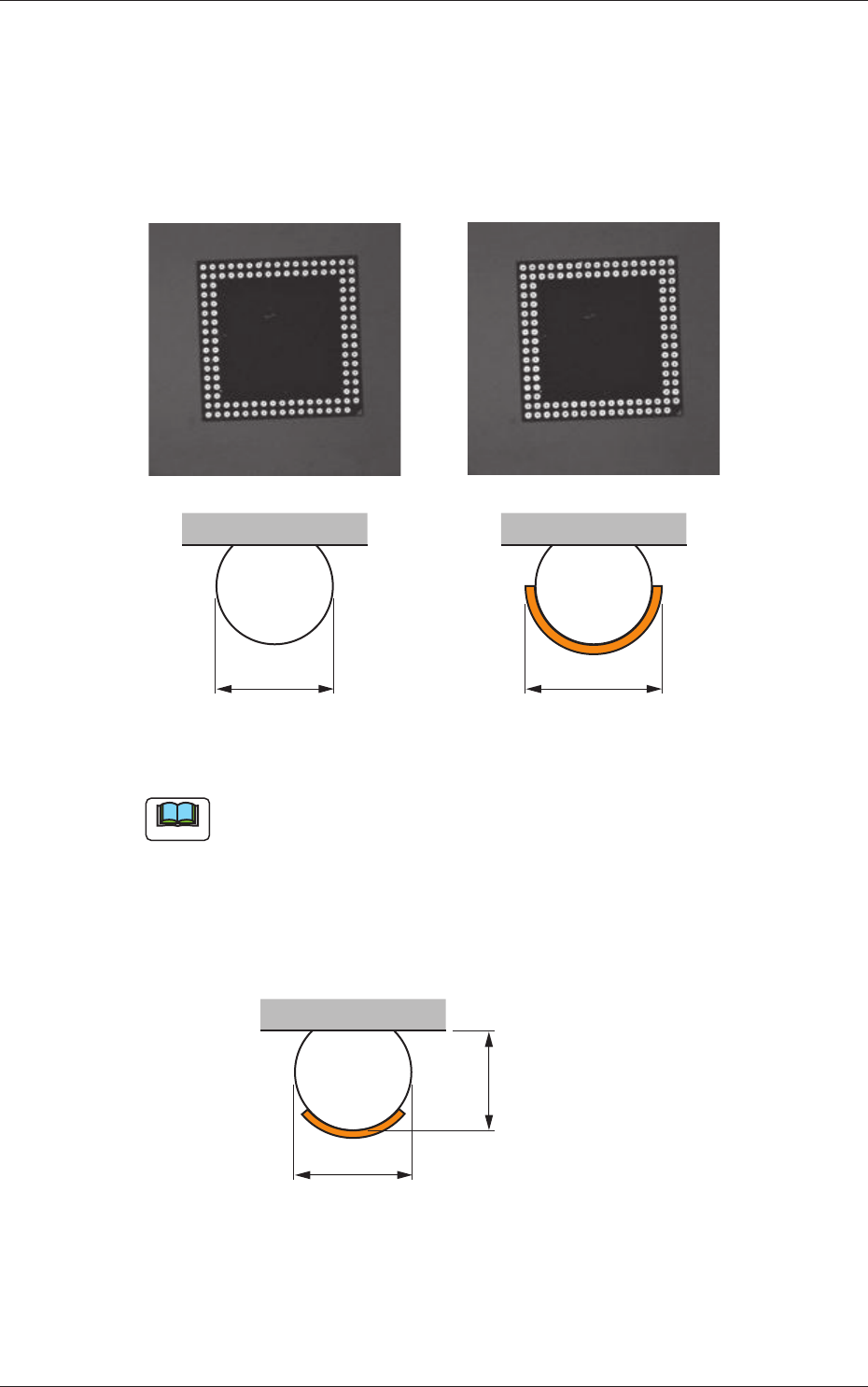 (b) バンプ厚みに対してフラックス膜厚が薄いと下図のような状態