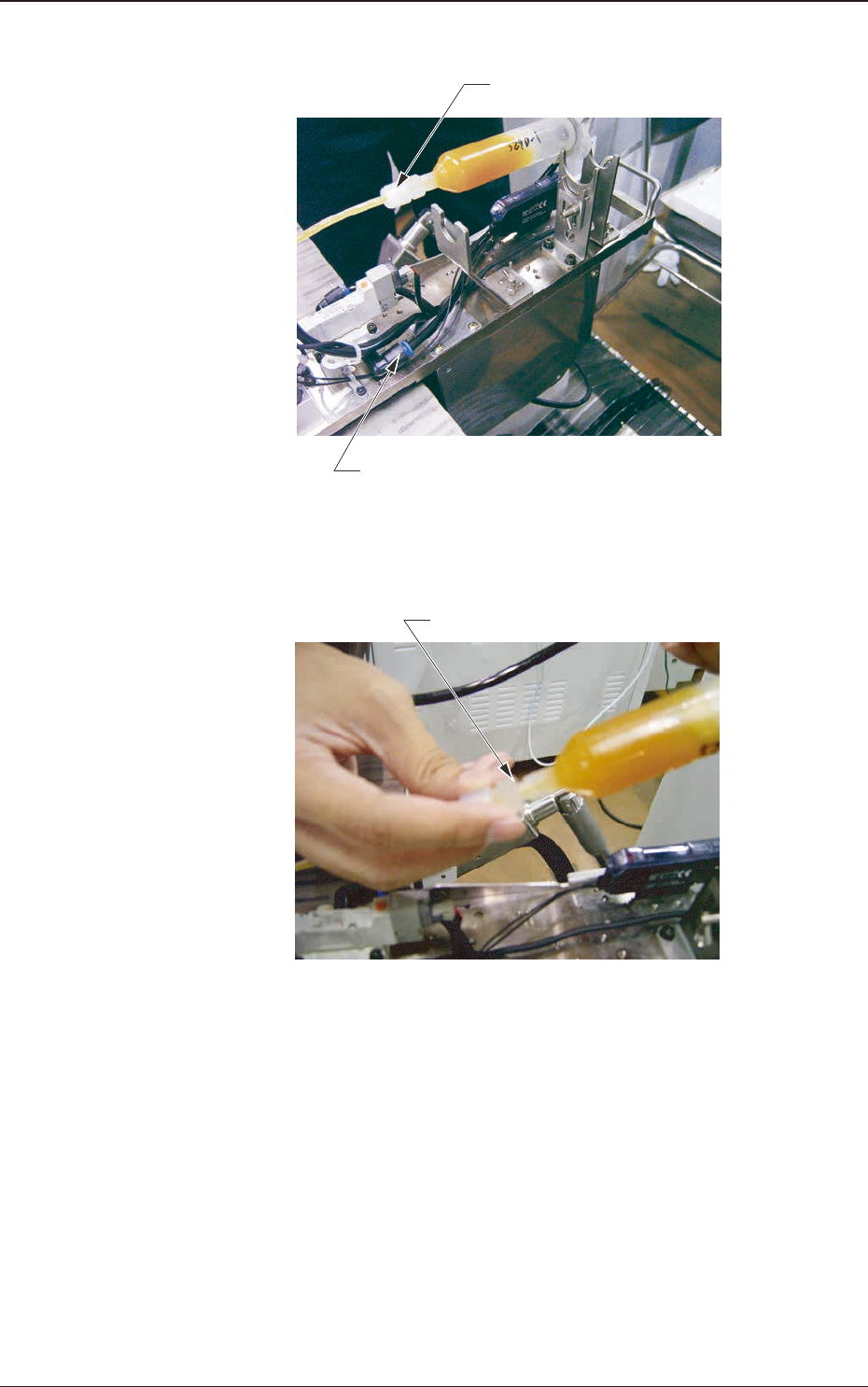 (4)将注入助焊剂的注射器安装到助焊剂涂敷单元后部,将供给管连接到