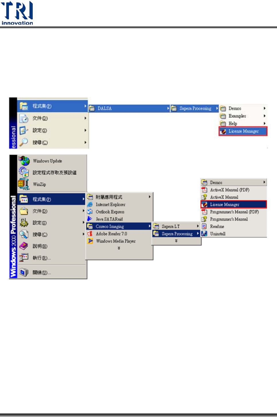 Step1. 點選[開始/程式集/DALSA/Sapera Processing/License Manager](或對於