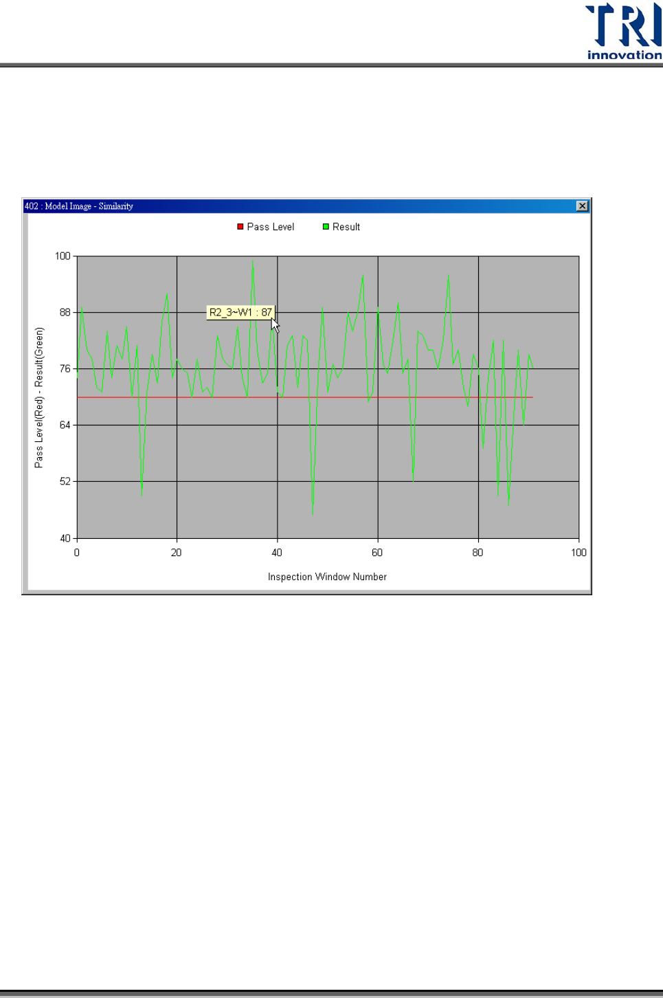 表分數,綠色是每顆元件檢測平均值,紅色是該參數的比對條件,在圖上點選可顯