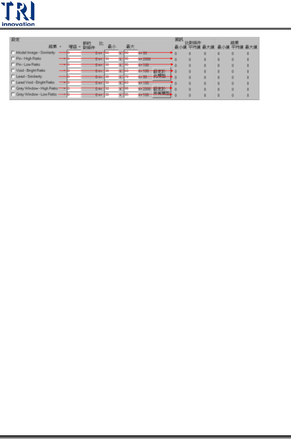 z 勾選區 – 勾選的檢測參數表示要改變的參數
