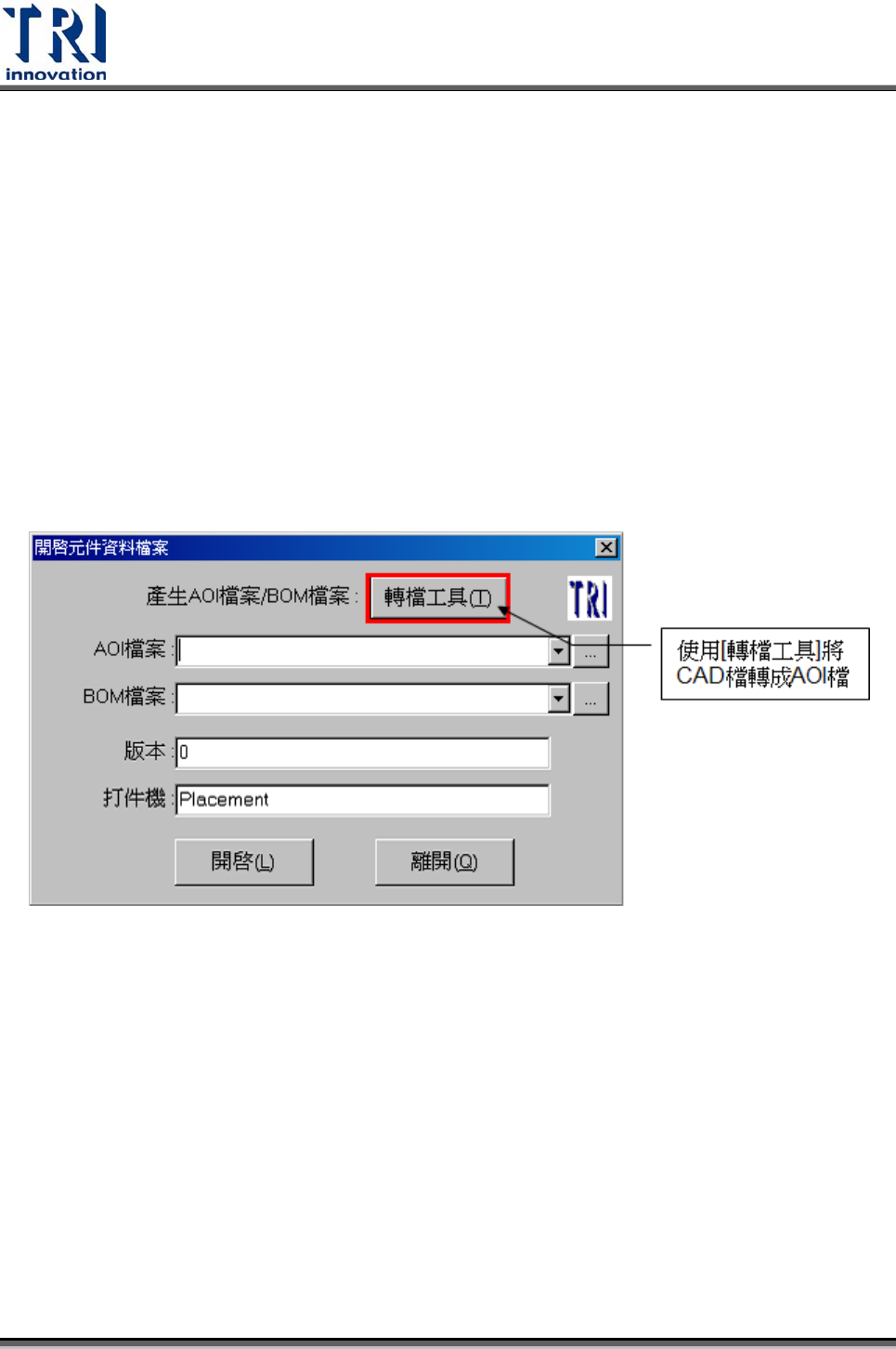 CAD 檔轉為 AOI檔。若是其他類型的 CAD,則使用者須先將其編輯為含有[元件名
